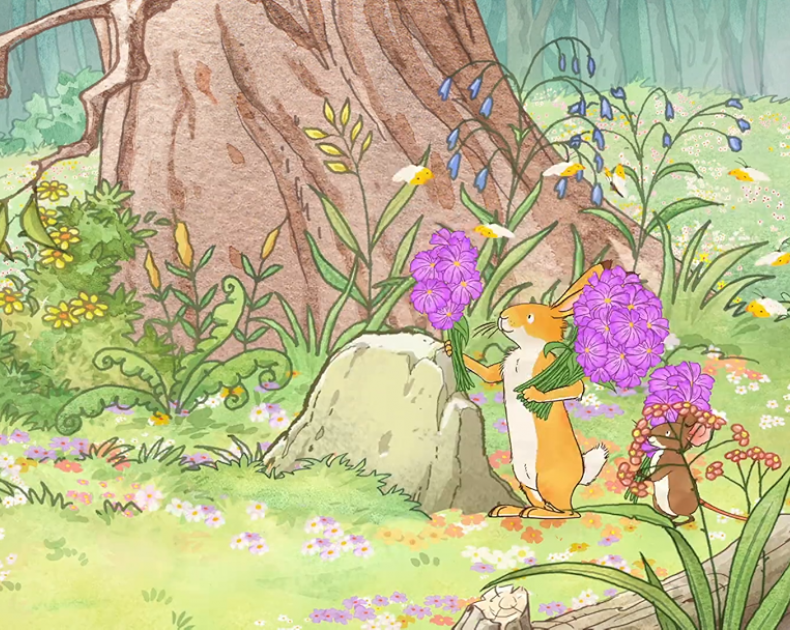 "Ik hou van jou tot aan de maan en terug!" Volg Grote Haas en Hazeltje en al hun vriendjes op hun liefdevolle avonturen.