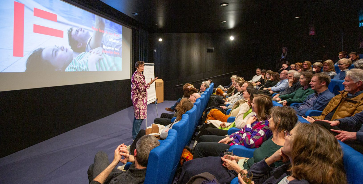 Header: foto Lidewijde Paris tijdens Hoe lees ik een film? van Aftersun in Filmhuis Den Haag. © Floris Scheplitz