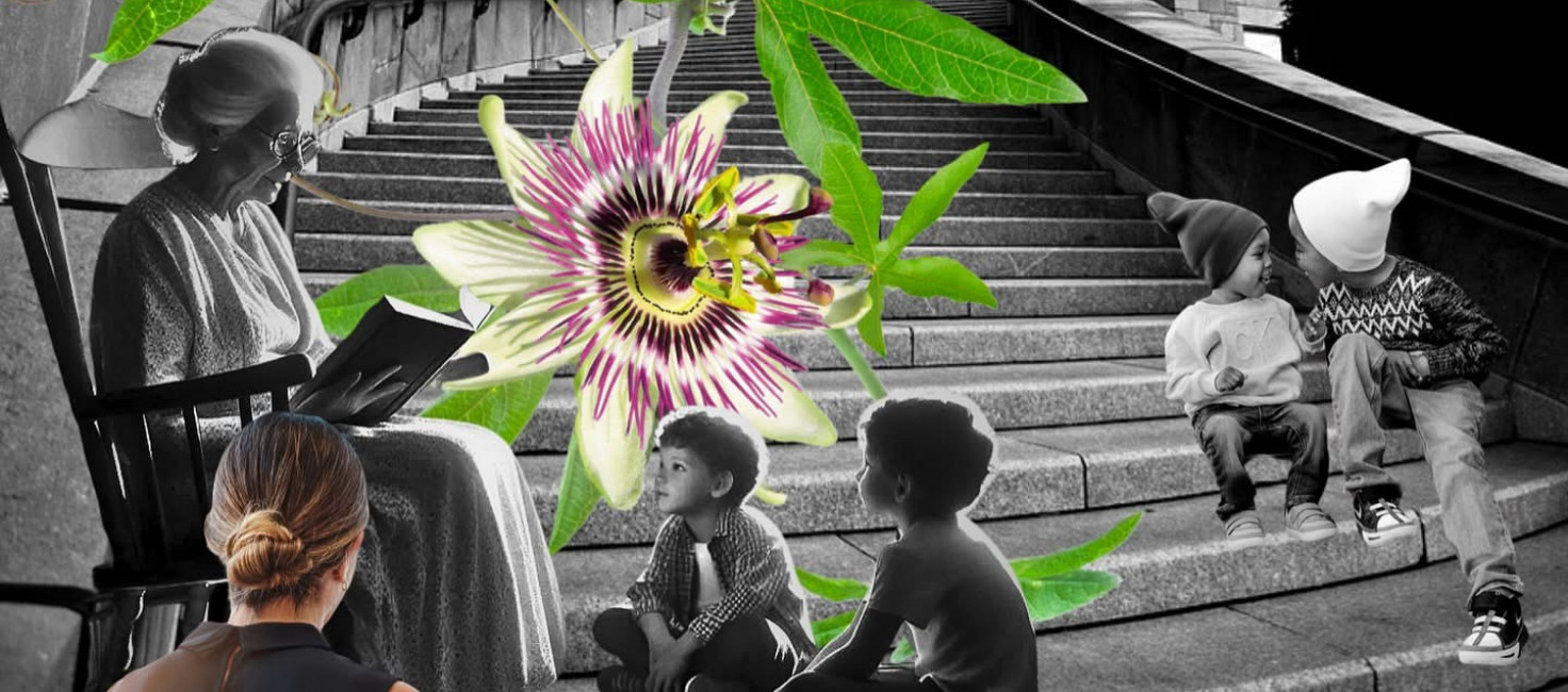 Afbeelding: Poster gemaakt door Monique Elsing voor On the Movie: een verbeelding van haar werk en de diverse doelgroepen waarmee ze werkt, gedreven door nieuwsgierigheid, onderzoek en de kracht van verrassing.